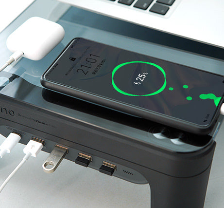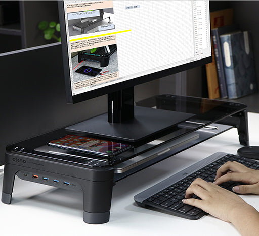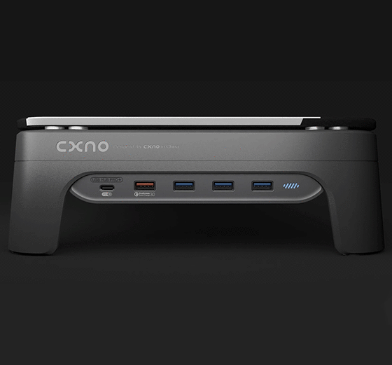 高速充電を可能にしたPD、QC3.0と高速データ移動が出来る3つのUSB3.0端子が、作業スピードを大幅にUPさせ、モニター下にスペースを作ることで手元に広いスペースを生み出します。さらに楽な姿勢で作業することにより長時間集中を可能にしてくれる「CXNO N2」は、こんな時代に周りと差をつけるための必需品です。