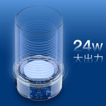 超音波洗浄機とは、超音波振動によって見えない微細な気泡(キャビテーション)を水中に発生させ、その気泡が破裂する瞬間に発生する衝撃波によって汚れを落とす洗浄機です。一般的な超音波洗浄機の出力は15W程度ですが、「DX-C3-002」は24Wの大出力を採用しました。超音波がエネルギーを迅速にピークに到達させ、細かな汚れやスキマに入り込んだ頑固な汚れもキレイに落とせます。