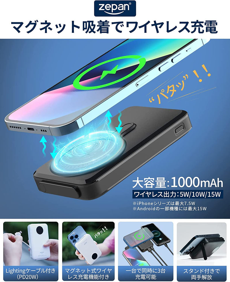 出力のLightning内蔵ケーブル付属出張や旅行で大活躍!
