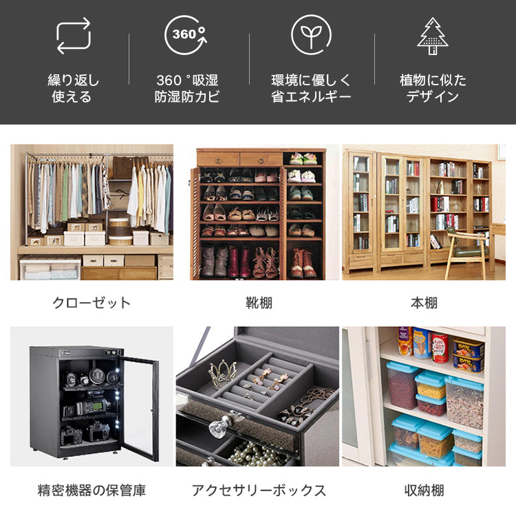 【無電源で使える】クローゼット 除湿機 小型 【プラグ内蔵式 クローゼット / 靴棚 / カメラ / 本棚 】 梅雨対策 繰り返し使える 除湿器
