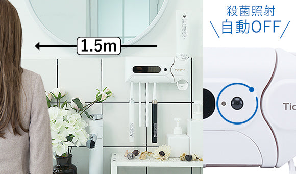 そこで、「PURETTA」には人感センサーを搭載。「PURETTA」の1.5m以内に人が近づくと自動で殺菌を停止します。人が離れると、再び殺菌を開始。