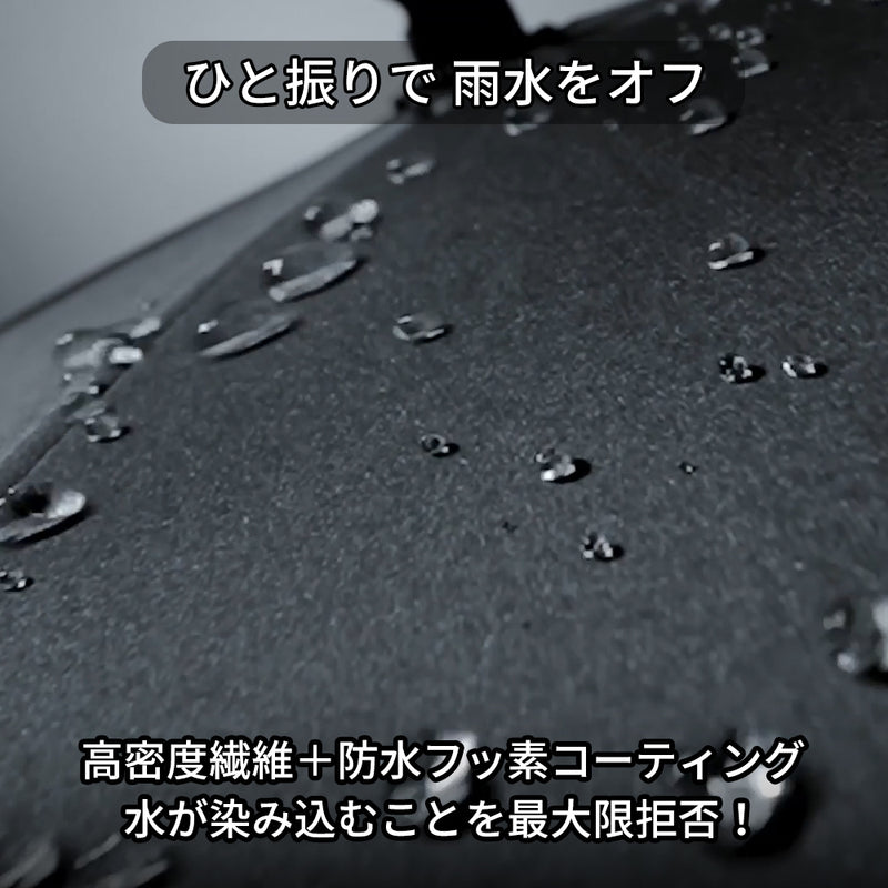 雨は傘布に落下した途端に丸まり、ロータス効果でコロコロところがり落ちます。お手入れは一振りでOK。
