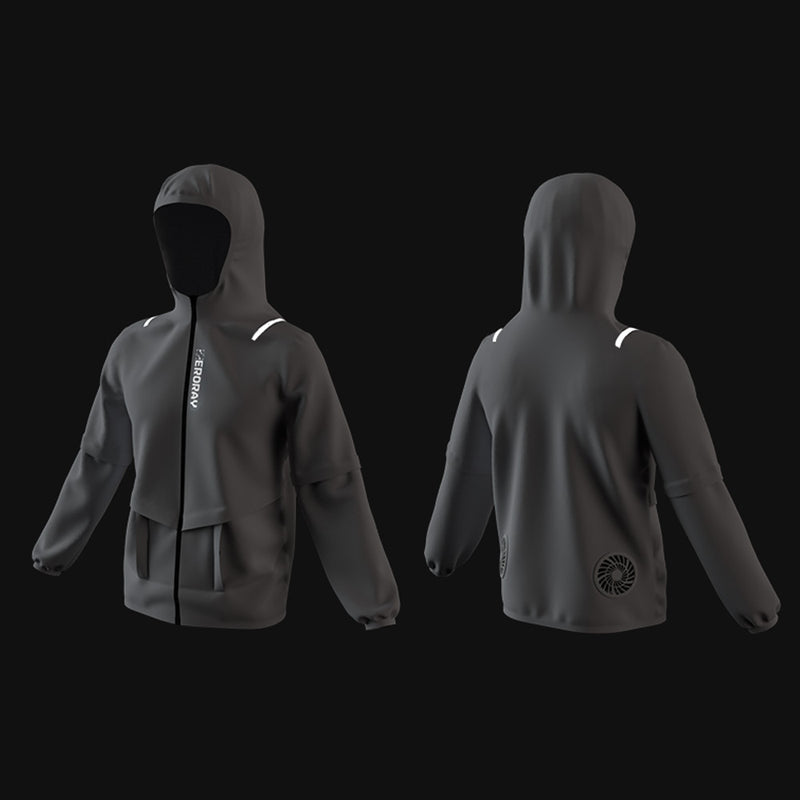 「ZERORAY」ファン付き送風パーカーは独特の3D循環送風によって、空気を服の中に取り込み、汗の気化を促進し、体温と湿度を快適なレベルまで調整してくれることで、最高の爽快感をお届けできます。